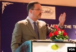 前美國國安會亞洲事務主任車維德星期三在戰略與國際研究中心的研討會上(美國之音莉雅拍攝)